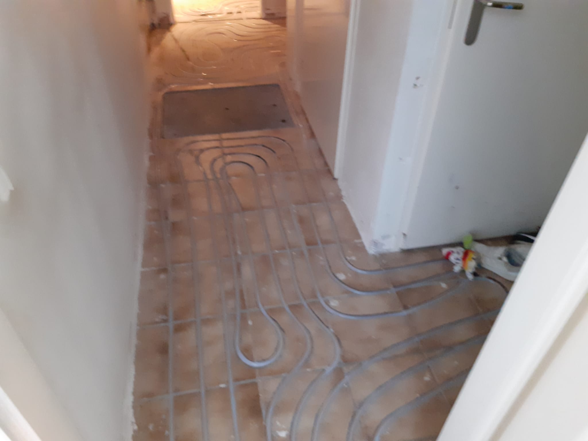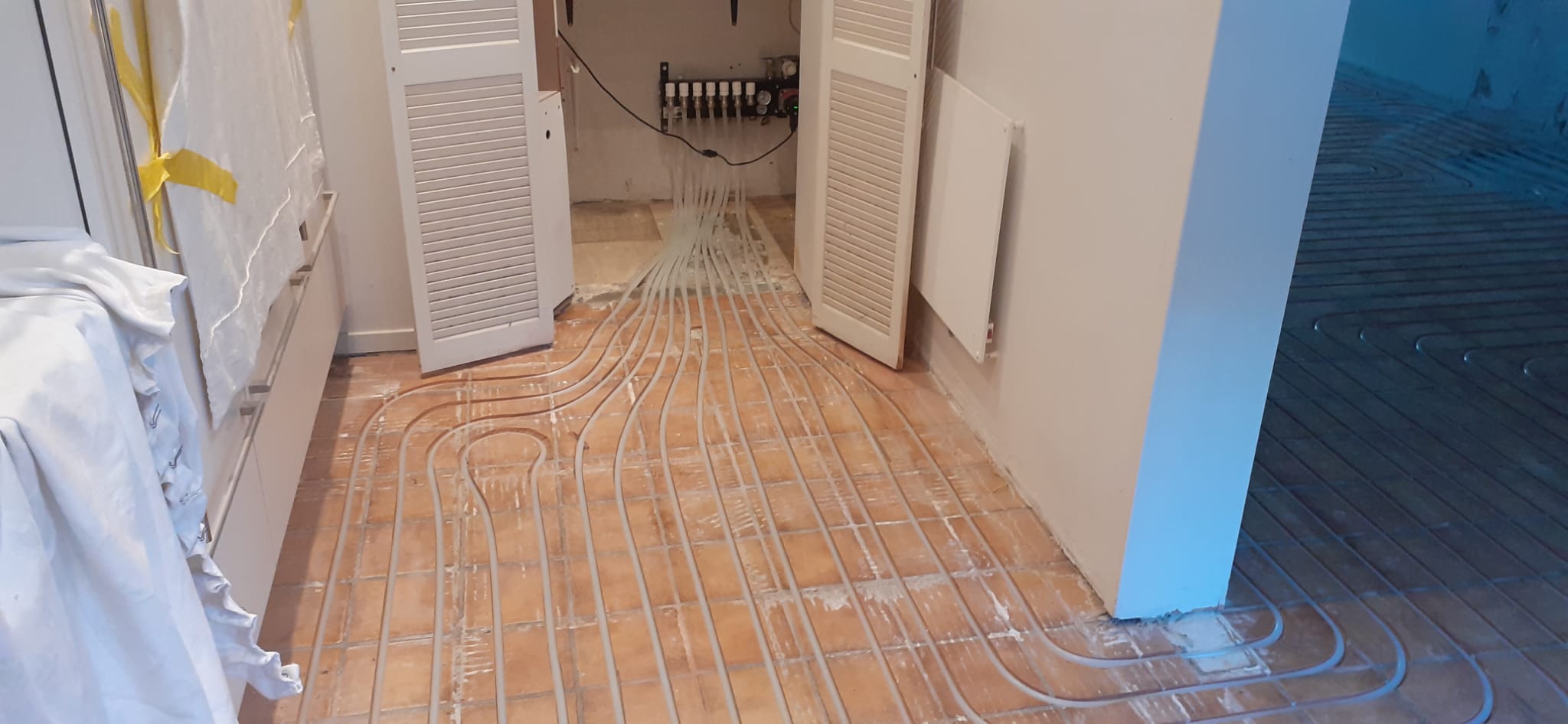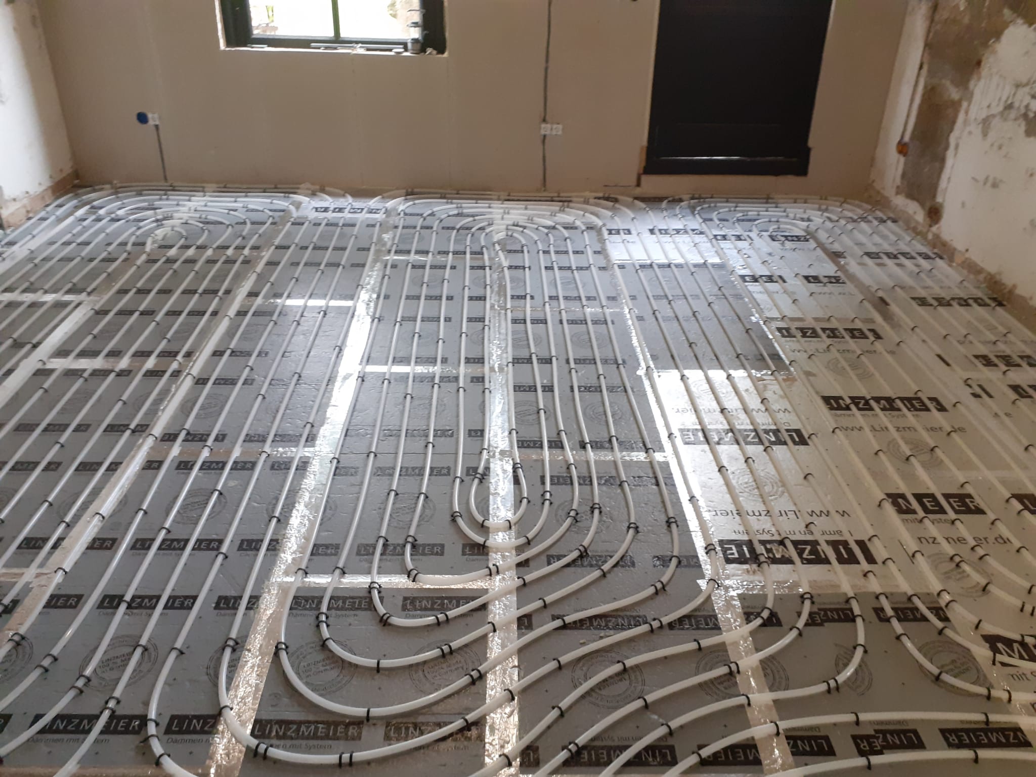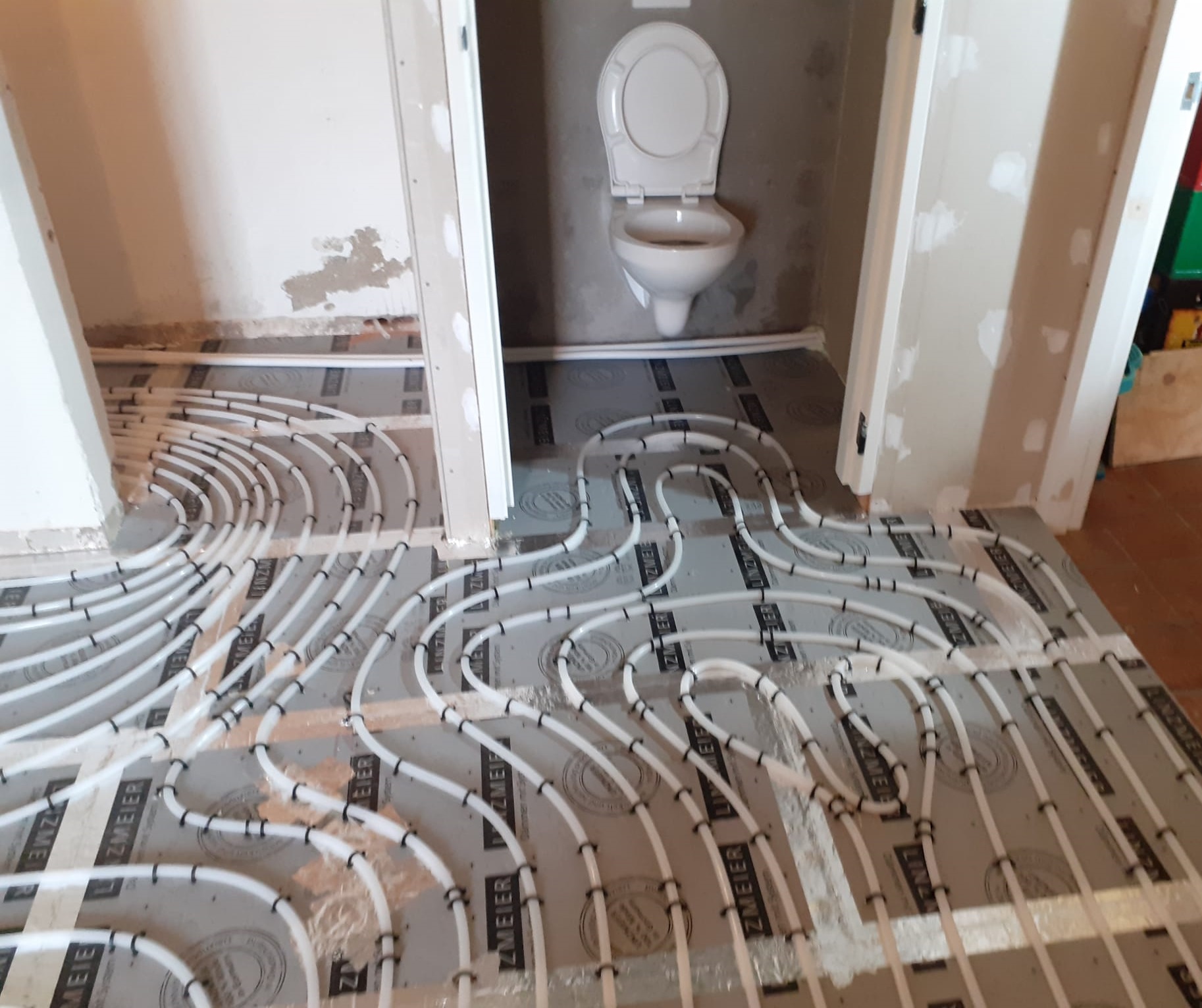 Energiezuinige, watergedragen vloerverwarming, aangesloten op uw verwarmingssysteem, voor gelijkmatige warmteverdeling, lagere energiekosten en langdurig comfort.
